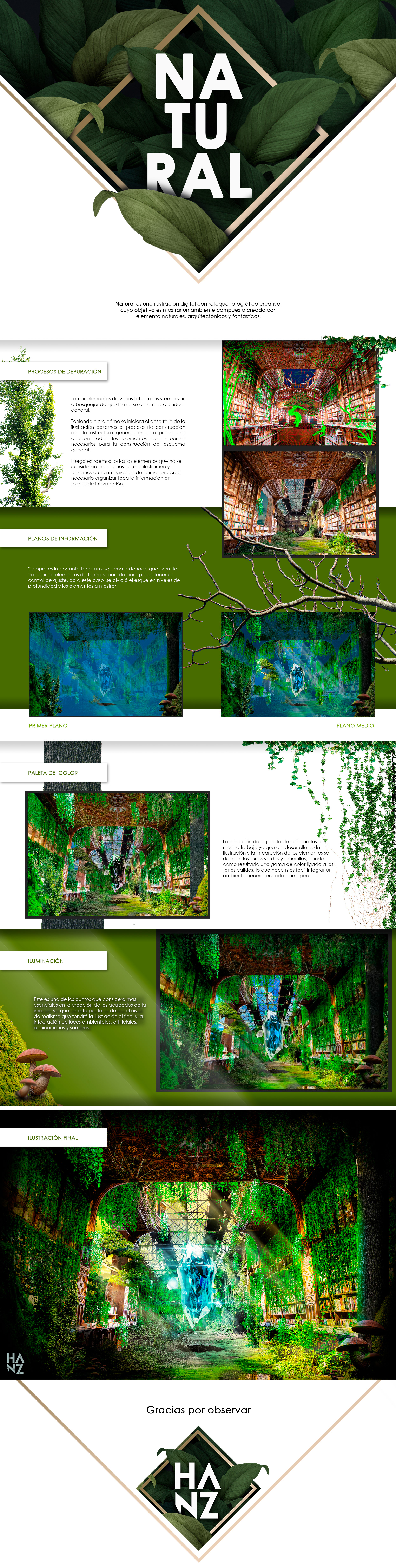 Natural es una ilustración digital con retoque fotográfico creativo, cuyo objetivo es mostrar un ambiente compuesto creado con elemento naturales, arquitectónicos y fantásticos.