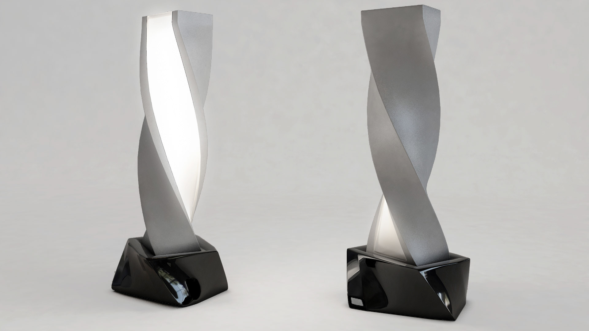 Diseño de producto conceptual, modelo de lámpara en espiral, planteada para espacios interiores