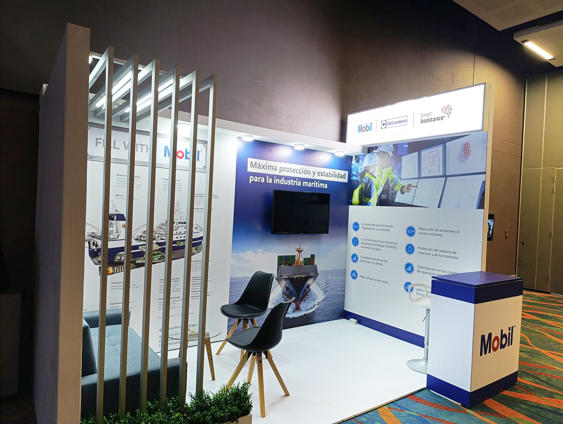 Nos complace mostrar el resultado final del montaje de nuestro stand dedicado a la industria marítima.